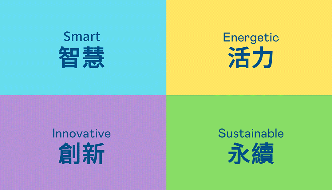 從穩重、信賴的万博藍開創新色彩,注入象徵智慧藍、活力黃、創新紫、永續綠的品牌色及動態多變的幾何圖形,呼應不設限的「Possibilities」精神,代表多元的專業技術及領域,在碰撞中相互觸動、融合、延伸,持續激盪出更多新的可能性。